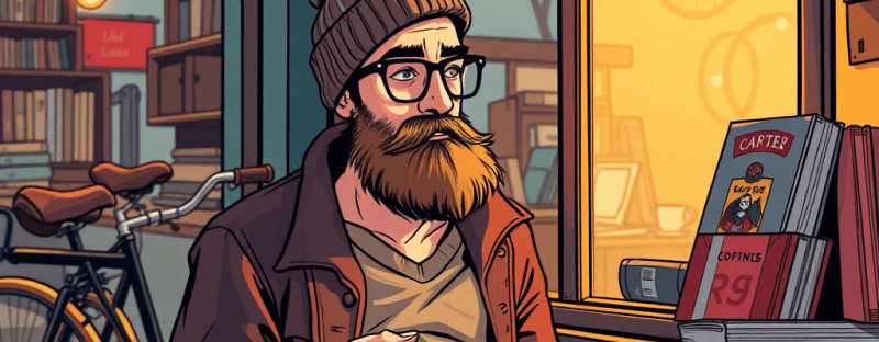 Sits a hipster sipping his fair-trade brew slow.